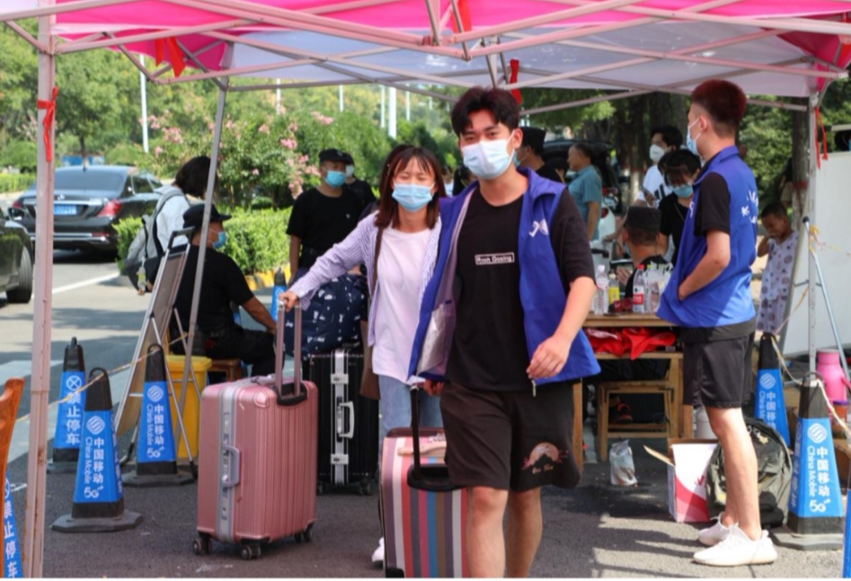8月29日至9月1日,根据学校新冠肺炎疫情防控期间学生秋季开学返校工作的整体部署,太阳成官网大二、大三、大四12000余名学子顺利错时错峰返校。期间,由校学生会、校大学生社团联合会、校青年志愿者协会、国旗护卫队、各学院学生会近百名同学组成的青年志愿者团队积极参与到学生返校志愿服务工作中去,为广大学子引导秩序、搬运行李、提醒防疫、指引报到等,让返校学子在进入校门伊始便收获满满的温暖和感动。