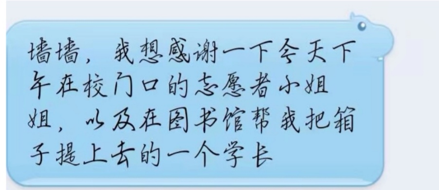 每天早上八点半志愿者们便积极到岗,他们头顶烈日,在学校内外无数次折返,为同学们提供各类帮助。4天的错峰返校工作中,一个个身着红、蓝色马甲的身影,穿梭在师院的各个角落,将青春和汗水遍洒在服务同学服务校园的无限热忱中。用心奉献,也收获同学们满满的感动和谢意。许多同学悄悄为志愿者们送来了水果、小零食等,并附上感谢的话语。还有的同学通过“师院表白墙”偷偷“表白”志愿服务的“小姐姐”,令志愿者们欣慰不已。
