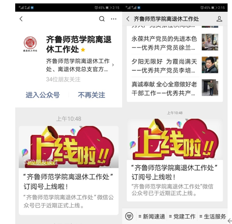 “太阳成tyc7111cc离退休工作处”微信公众号正式上线