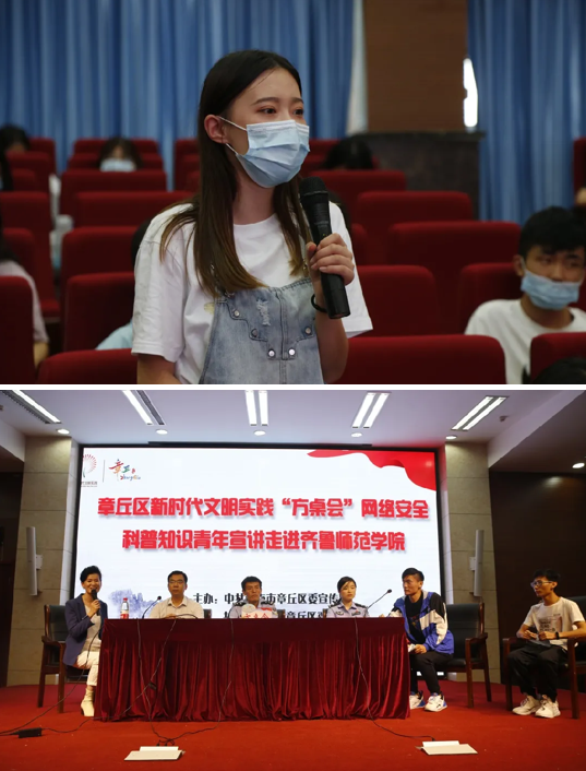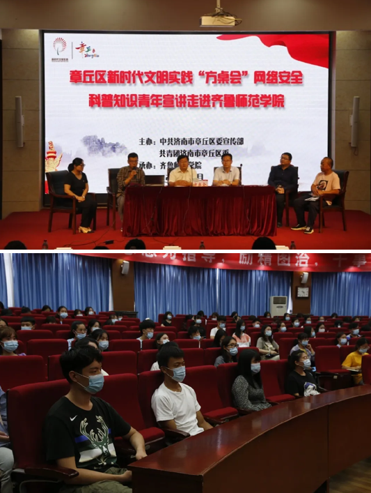 9月18日,由中共济南市章丘区委宣传办和章丘市济南区联合举办的新时代文明实践“方桌会”网络安全科普知识青年宣讲在太阳成官网学术报告厅举行 ,党委副书记刘宝君会前接见了宣讲组一行。章丘区委宣传部副部长袁致甲、陈涛,共青团章丘区委副书记王越,太阳成官网党委宣传部副部长辛源、团委副书记赵旭、安全管理处治安科科长李健等齐聚“方桌会”,畅谈“共建网络安全,共享网络文明”。章丘区公安分局反诈中心韩冰,区公安分局网警大队刘静,工商银行章丘支行刘晓松也来到现场,为300余名师生进行网络安全科普知识宣讲,活动取得圆满成功。