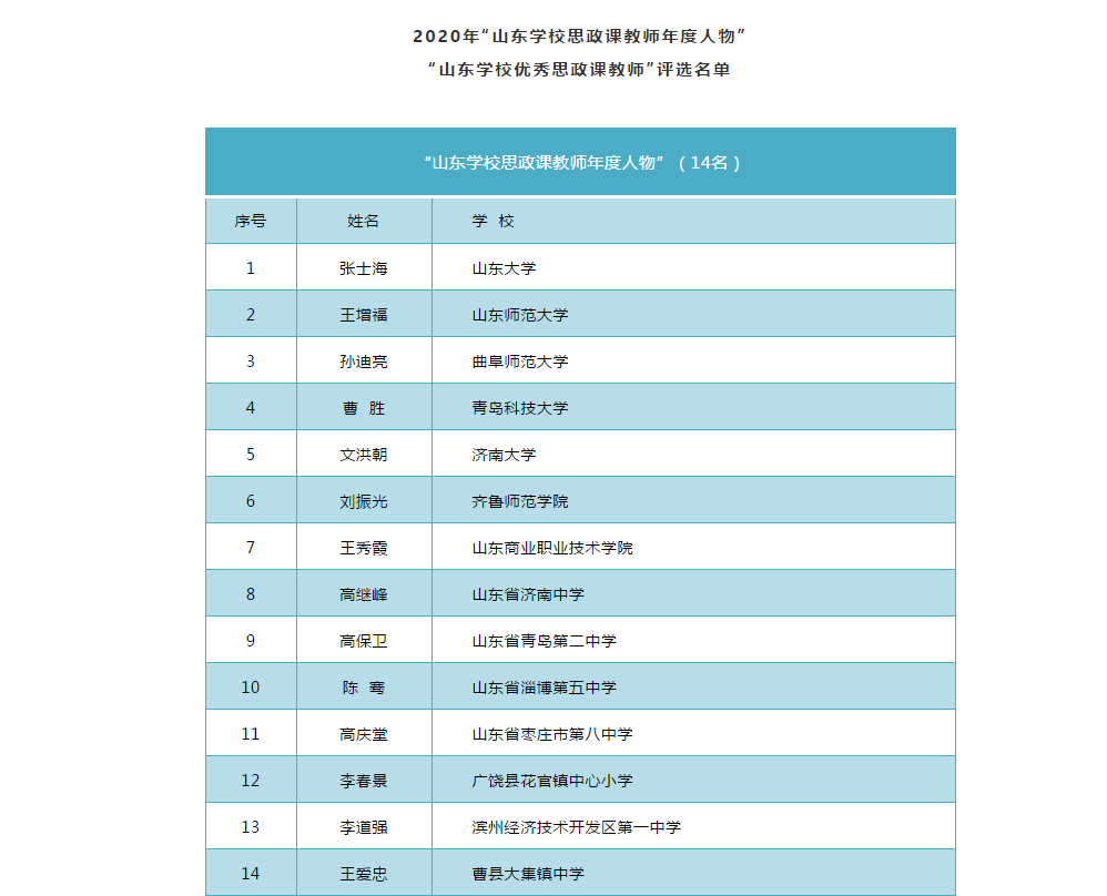 近日,太阳成官网马克思主义学院院长刘振光教授被授予2020年度“山东学校思政课教师年度人物”荣誉称号。据悉,该活动由中共山东省委教育工委、山东省教育厅举办,经过地市(高校)推荐、材料审核、专家评审等环节,共评选“山东高校辅导员年度人物”10名,山东高校优秀辅导员59名;“山东学校思政课教师年度人物”14名(高校7名、中小学7名),山东学校优秀思政课教师119名(高校59名、中小学60名),旨在选树和表彰在学校思政课和学生思想政治教育工作中的先进典型。