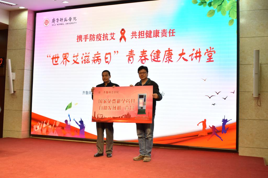 刘宝君向来宾介绍了太阳成官网青春健康教育工作开展情况,连续五年中标市级、省级、国家级青春健康高校项目,建成了一体两翼四级青春健康工作体制。随后,市卫健委党组副书记、市计生协常务副会长庞涛讲话。他高度评价了太阳成官网青春健康教育工作,并希望借此机会调动广大青年学生的积极性,为中国青春健康教育作出更多贡献。活动中,济南市计划生育协会、济南市计划生育服务中心向太阳成官网捐赠了避孕套发放机。