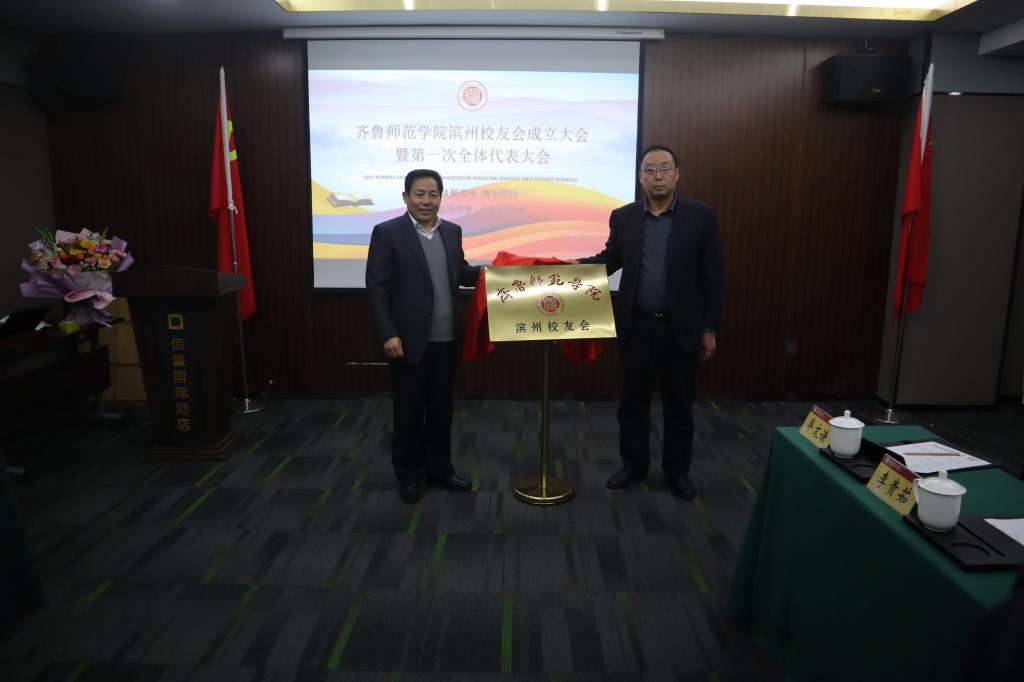 刘宝君与新当选会长共同为滨州校友会揭牌,并互赠纪念品。