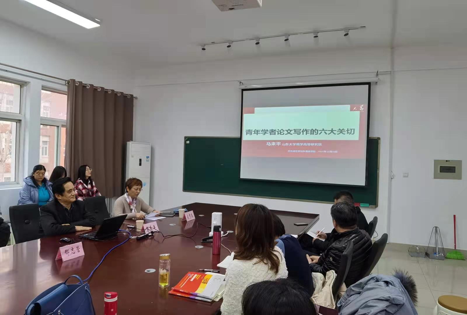 马来平教授从 “选题应不应该追求热点”、“好题目的标准是什么”、 “如何占有和消化资料”、“对‘新文科’研究方法有何看法”、“怎样构思论文框架”、“投稿有什么技巧”六个方面,结合自己的科研经历和丰富详实的科研实例,就青年教师如何进行论文写作进行了生动的讲解。演讲结束后马教授与老师们进行了亲切交流,对教师们提出的问题给予一一解答,在学术论文写作方面为老师们指点迷津。