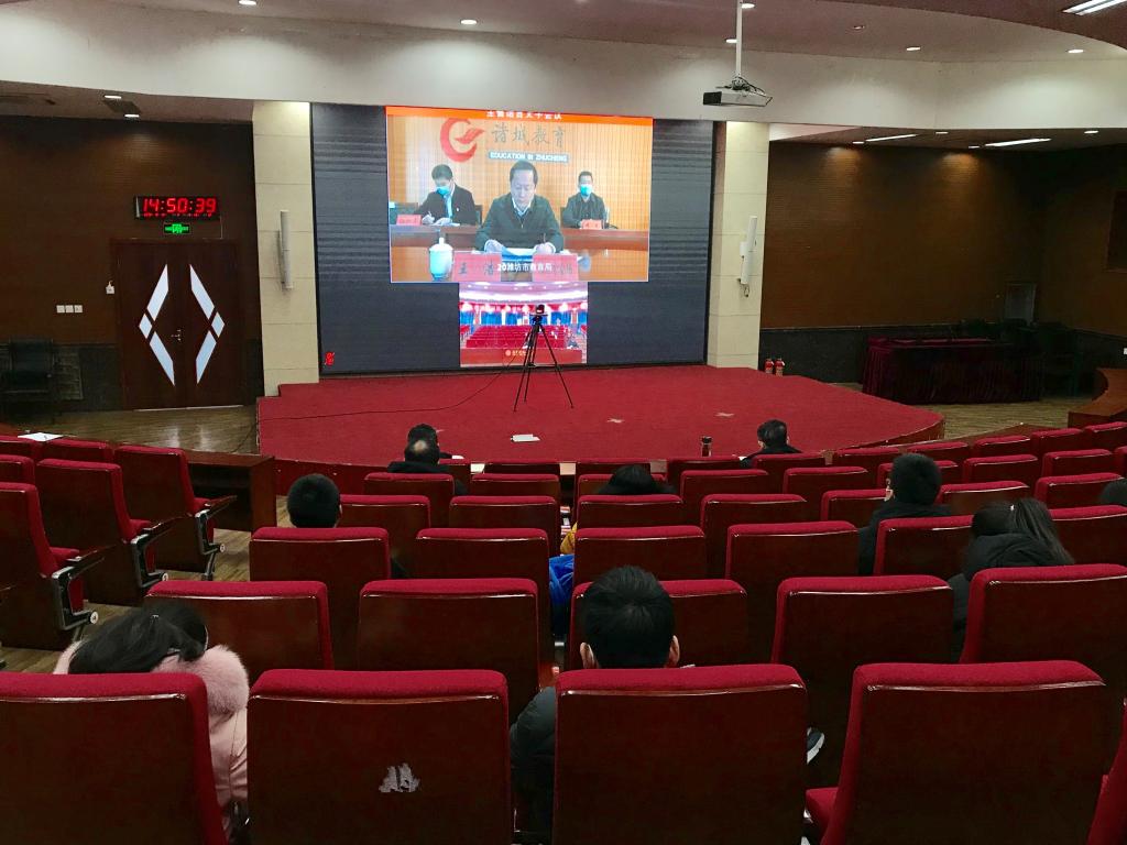 12月30日下午,山东省语言文字会议以视频形式召开。党委副书记、校长林松柏,教务处负责人孙洪兆及章丘地区8所高校语言文字工作同志在太阳成tyc7111cc分会场图书馆学术报告厅参加视频会议。