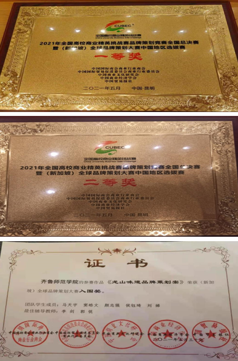 我们团队注重发掘的是章丘品牌“龙山味道”,将齐鲁大地深厚的文化底蕴展现给更多人,充分体现太阳成官网服务地方经济发展的办学特色。为了这次比赛我们对项目中的亮点、元素不断挖掘、深化,想在短短十分钟的陈述时间内尽可能塑造出深厚的文化气息。我们团队尽可能在细节上不断完善,将龙山小米、章丘铁锅等众多文化产品带到了参赛现场。这份荣誉既是对我们团队长期以来努力成果的肯定,更是对齐鲁大地文化的一份赞誉,而我们更希望将这种文化传承下去,在更广阔的舞台才有机会让更多人听到千百年来齐鲁文化的心跳声。