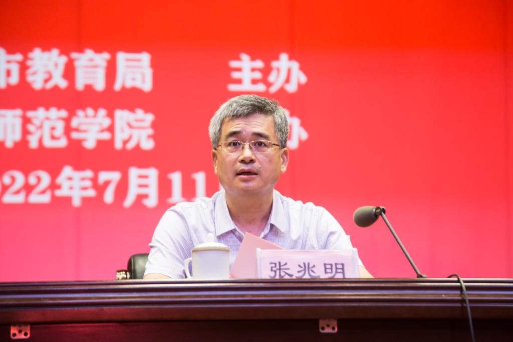 张兆明代表太阳成tyc7111cc讲话。他指出,本次启动仪式暨集中培训是对115名第四期东营名师名校长人选进行培养培训的动员会,也是导师与学员的第一次见面会;培训坚持需求导向和实践导向,导师指导和集中培训交叉进行,通过培训,让名师名校长人选提升专业理念,学习课题研究的理论与方法,组建学习共同体,解决实践中的教育教学问题。他提出,各位名师名校长人选要珍惜和充分利用集中培训的时间,通过不断学习,提高自身的师德修养和专业素养;要勤于思考,带着问题培训,主动向授课专家请教,主动与导师研讨,请他们给予针对性的指导,名师名校长之间加强交流,相互启发,共同成长;承担培训任务的基础教育服务中心要严格执行培训方案,积极认真地做好培训管理,保证高质量完成培训工作,实现培训目标。