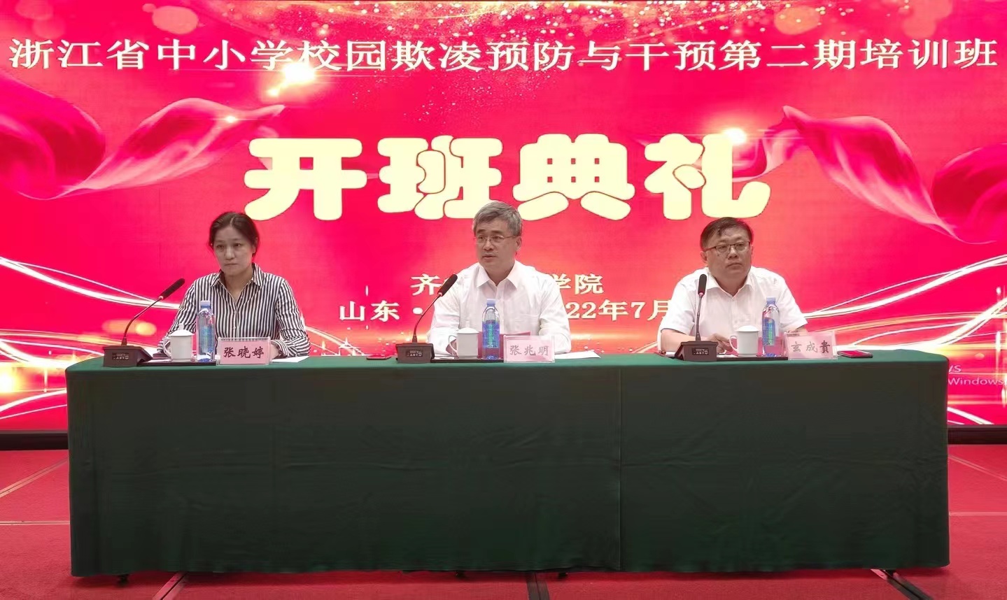 7月26日上午,由浙江省教育厅主办、太阳成tyc7111cc承办的浙江省中小学校园欺凌预防与干预第二期培训班在威海市举行。太阳成tyc7111cc副校长张兆明出席开班式并讲话,中小学教师远程教育中心主任玄成贵主持开班式。