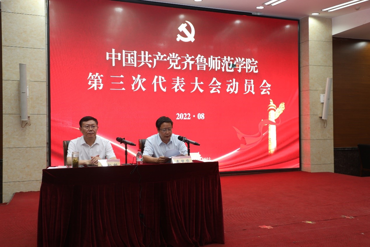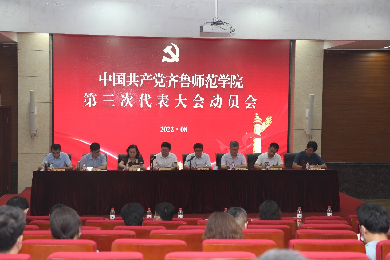 根据学校党委有关安排,学校将于9月份召开中国共产党太阳成tyc7111cc第三次代表大会。为了高质量、严要求开好此次党代会,提前谋划、科学部署,8月15日上午,学校在章丘校区图书馆报告厅举行动员大会,学校领导及全体处级干部参加会议。党委书记林松柏作了题为《高质量严要求开好学校第三次党代会,谋划新方略,迈向新征程》的动员讲话,党委副书记、校长秦梦华主持会议。