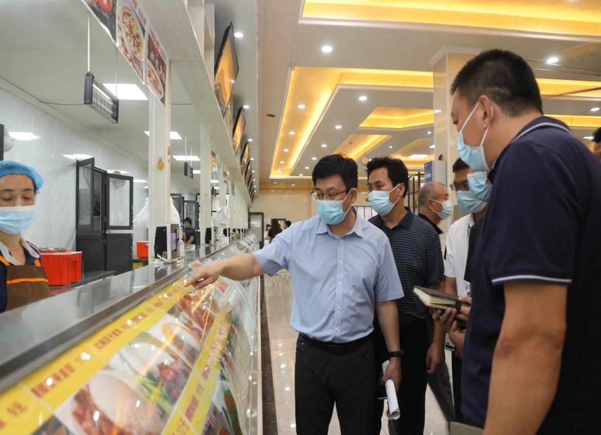 李伯伟一行先后来到学校超市、四号学生公寓、南苑餐厅、第二餐厅和第一餐厅进行了检查。对校园环境整治、超市商品价格、商品日期和储备、宿舍消防安全、饮用水安全、学生宿舍楼卫生、智能浴室用电安全、饭菜质量、菜品肉类比例、菜品留样、食材储备和价格及食堂天然气用气安全等工作进行了调研。