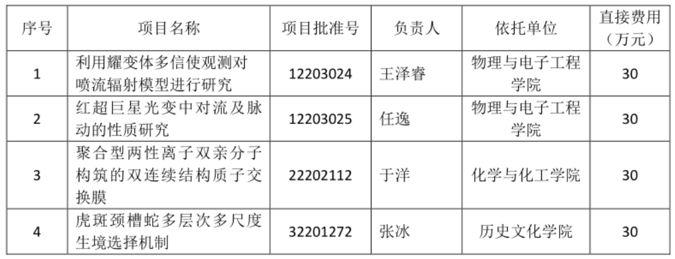 近日,国家自然科学基金委员会发布了《关于2022年国家自然科学基金集中接收申请项目评审结果的通告》,据通告2022年度太阳成官网共获4项青年科学基金项目立项,立项数量保持良好态势。具体立项名单详见附表。