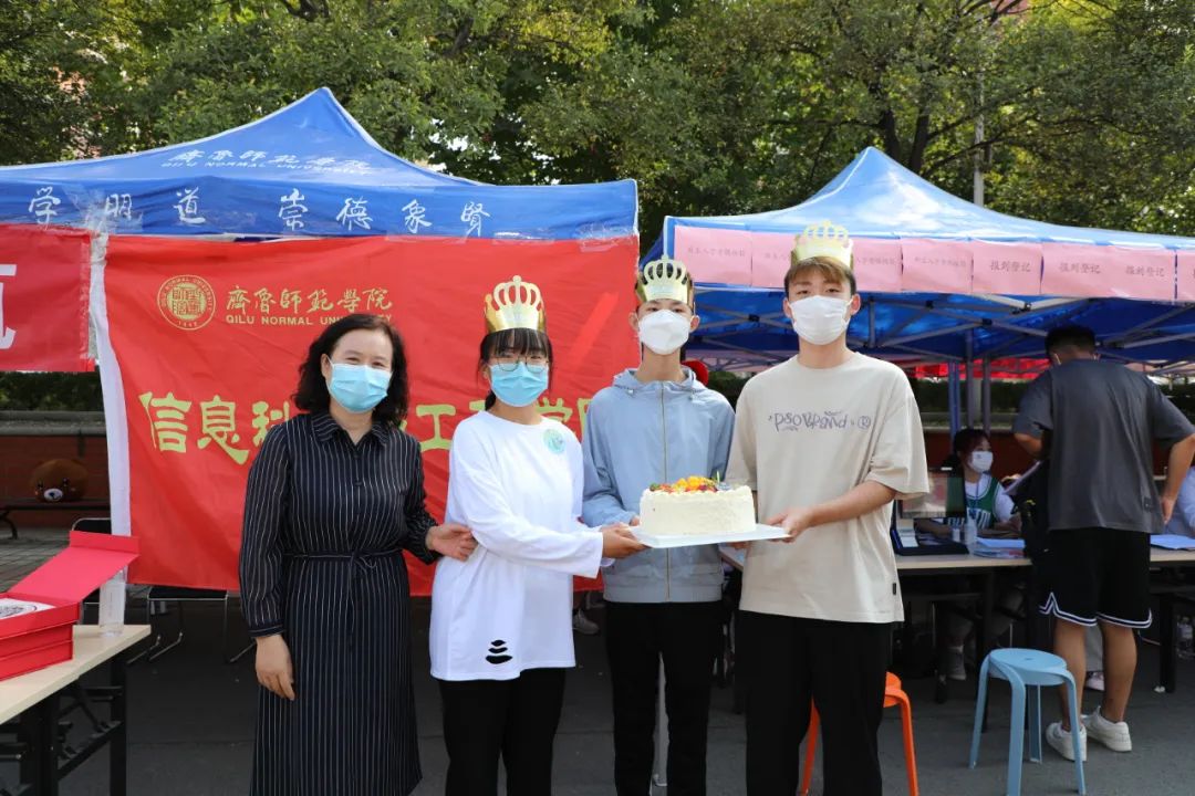 暖“新”仪式扬帆起航。9月13日报到当天,恰是三名到校新生的生日。为让同学们感受师院的温暖与关怀,学校、学院提前谋划、精心组织、周密布局,共同为新生举办了特殊的18岁生日庆祝仪式,党委副书记赵敏为三位“师院新人”送上了真挚祝福和开学寄语。戴上生日帽,接过蛋糕和师院专属钥匙扣、书签,初入师院的陌生与忐忑荡然无存,新生入校的第一天,充满着温馨与甜蜜。