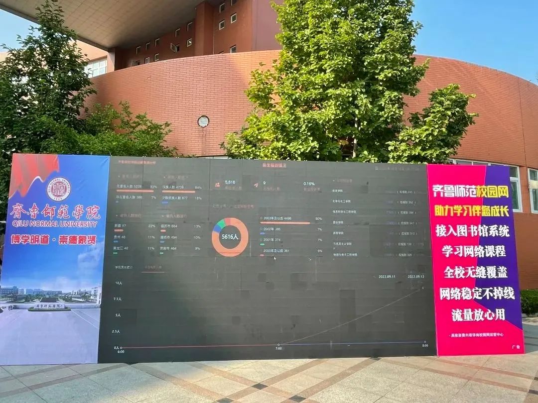 迎新现场热闹喜庆、温馨祥和,2022级新生报到工作有序进行,新鲜力量的注入给师院增添了无限青春活力与蓬勃希望。校门口迎新工作人员和志愿者们耐心周到的服务传递着师院人勇于担当、无私奉献的精神;济南火车站、长途汽车总站、遥墙机场,章丘火车站、长途汽车总站,师院人用匆匆身影和热情似火的心,等待2022级全体新生的到来;校园摆渡车、大巴车满载新生、穿梭行驶,承载着师院里的喜悦与温暖;图书馆前的大屏幕上,实时更新报到数据,一次次充满力量的数字增长,意味着一位位充满活力的新生踏进了师院大门,“博学明道、崇德象贤”的校训精神定将在2022级萌新的身上得到传承、延续与发展。