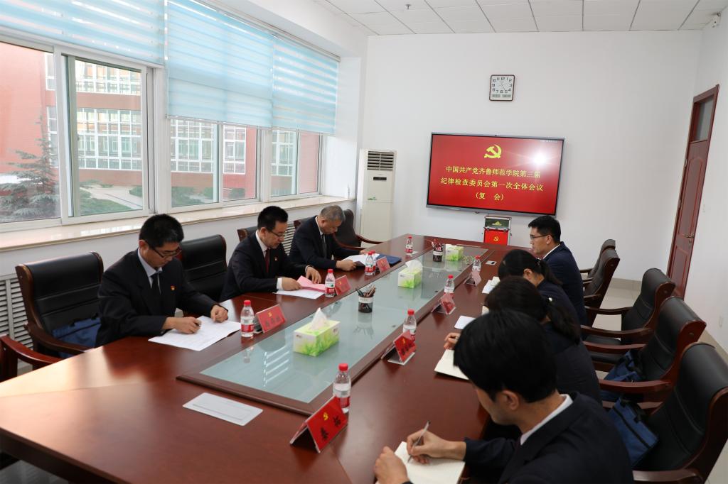 9月17日下午,中国共产党太阳成tyc7111cc第三届纪律检查委员会第一次全体会议在在章丘校区图书馆二楼216会议室召开,新当选的7名纪委委员参加会议。会议由高明辉主持。
