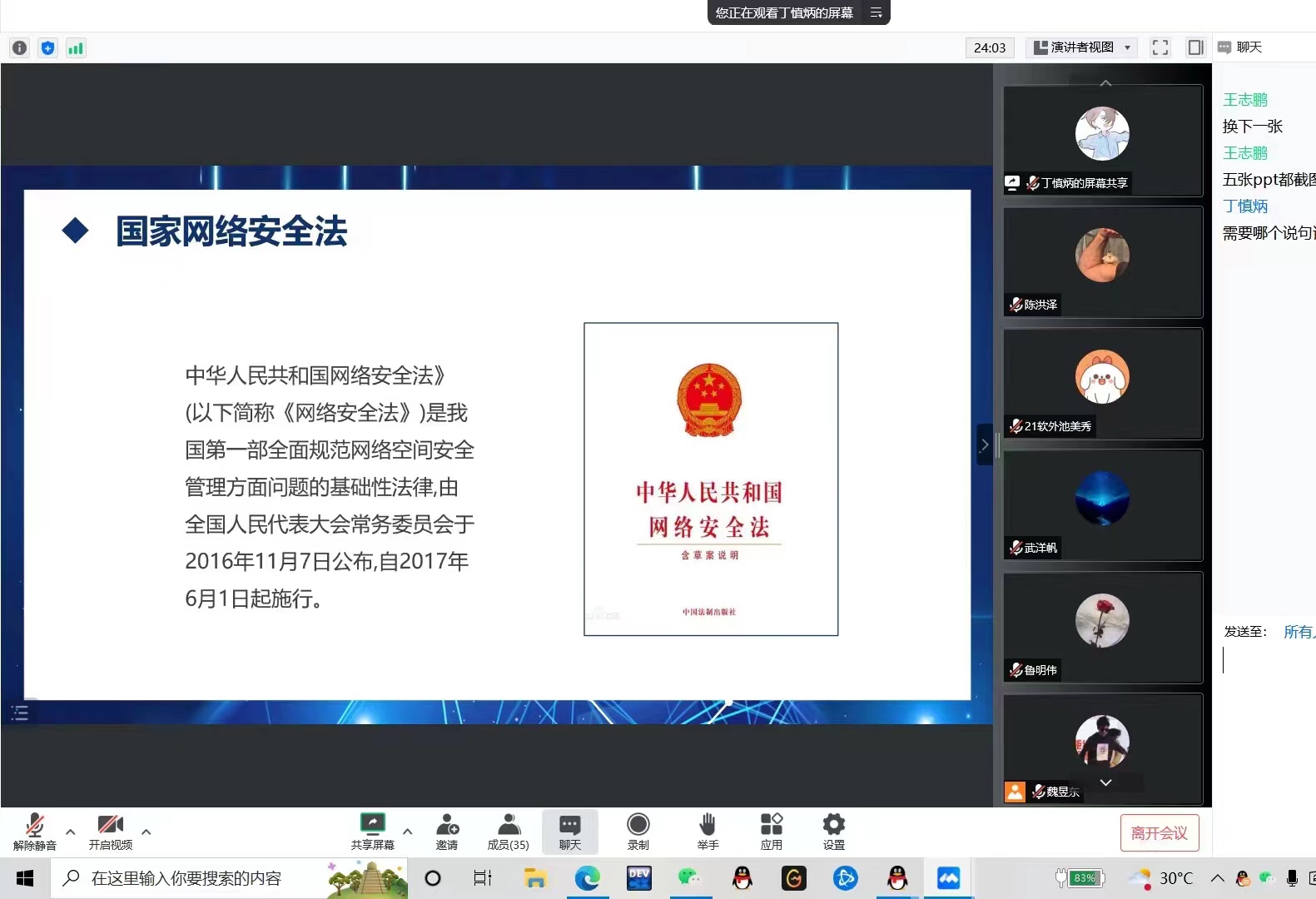 同上一堂网络安全公开课。9月8日,学校团委按照教育部文件要求下发通知,组织全校学生观看由教育部思想政治工作司和公安部刑事侦查局共同打造的一堂面向全国师生的网络安全公开课,学习了网络安全法律法规、网络安全知识等内容,全体师生通过“中国大学生在线”微信公众号的“守护青春”栏目积极参与“守护青春、网络有你”全国大学生网络安全知识答题活动,于答题中切实深刻地感悟到“网络安全为人民,网络安全靠人民”。