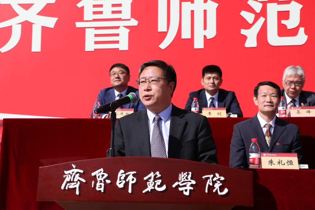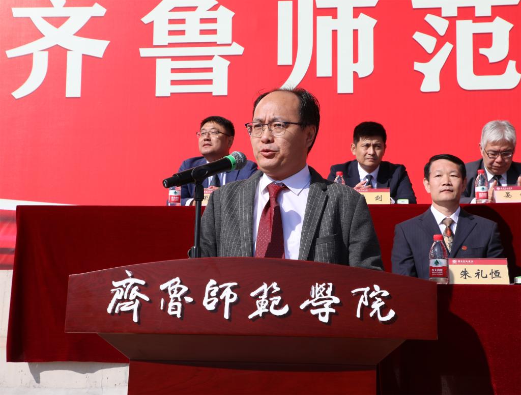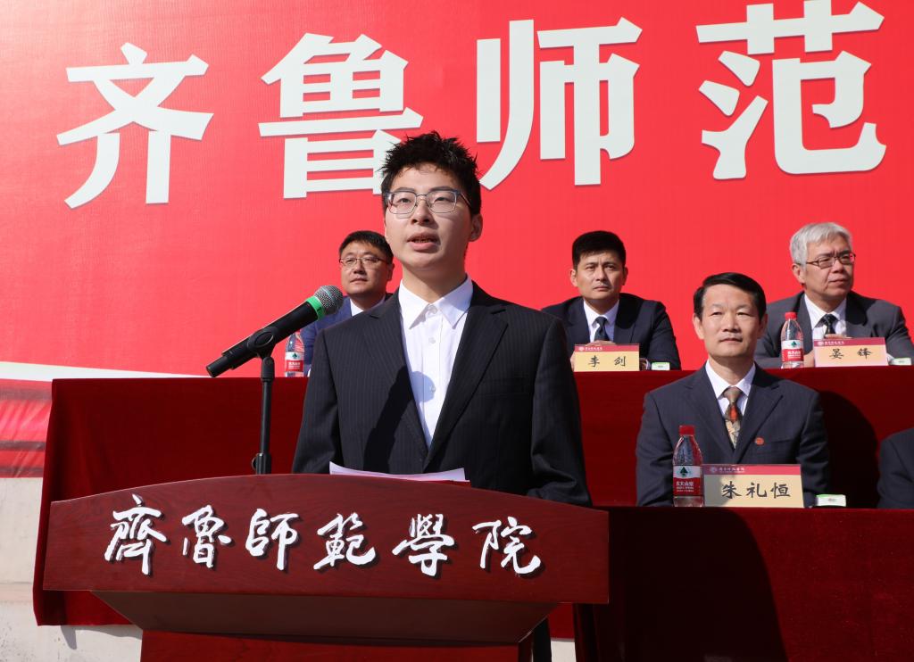 太阳成官网1992级英语专业校友、山东大学硕士生导师张传旭教授在发言中深情回顾了自己在校的学习生活,分享了与师院的不解之缘,展现出几代师院人对知识孜孜以求的探索精神。他寄语同学们要永远秉持初心选择生活的道路,抛开世俗的成功标准,永葆好奇之心和学习激情,不断研究探索,不断超越自我,实现个人自由而全面的发展,为自己的梦想,更要为人类的理想而奋斗。