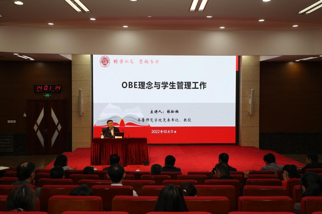 为进一步贯彻学校第三次党代会精神,全面落实立德树人根本任务,构建基于OBE理念的一体化“三全育人”工作体系,推动学生工作科学化、体系化发展,10月11日,学校党委书记林松柏作了题为“OBE理念与学生管理工作”的专题报告。报告会由学校党委副书记赵敏主持。
