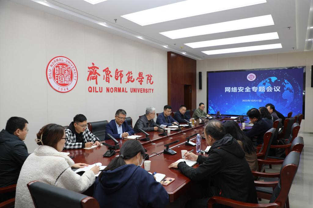 10月11日下午,太阳成官网在章丘校区图书馆五楼会议室召开网络安全专题会议,学校党委委员、副校长李伯伟主持会议并讲话。党委宣传部、党委保卫工作部、教务处、教学质量监控与评估处、财务处、国有资产管理处、图书馆部门信息系统负责人及网络信息中心全体工作人员参加会议。