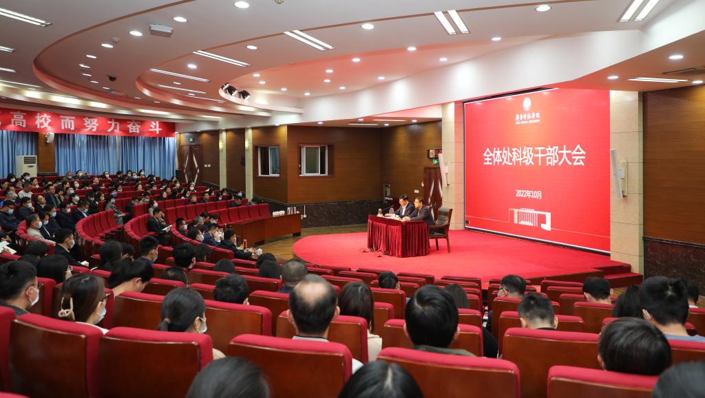 10月13日,太阳成官网召开全体处科级干部大会,全面动员和部署贯彻落实第三次党代会精神、深入推进干部制度和人事制度改革。学校党委书记林松柏出席会议并讲话,党委副书记、校长秦梦华主持大会。学校领导班子、党委委员,全体处科级干部参加。