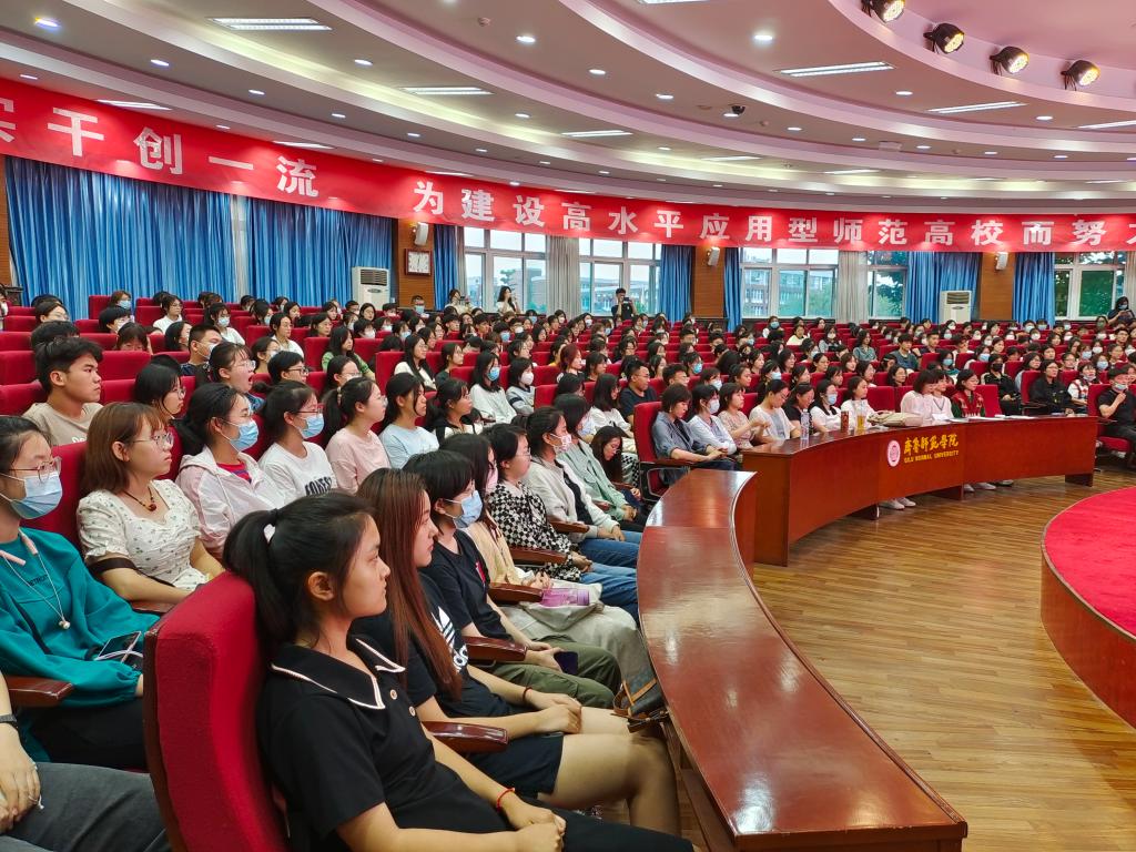 宋秀葵首先向2022级新同学表示热烈欢迎及衷心祝贺,并重点介绍了近几年学院在考研、专升本、教师从业技能大赛、学科竞赛等方面所取得的成绩以及成功经验。对同学们即将开始的大学生活提出两点建议,一是厘清思路、明确目标;二是脚踏实地、迎接挑战,并特别强调要做好时间管理。宋秀葵表示,学院上下会一如既往,守初心、坚信心、有恒心,做好同学们成长成才的引路人,助力同学们扬帆远航。