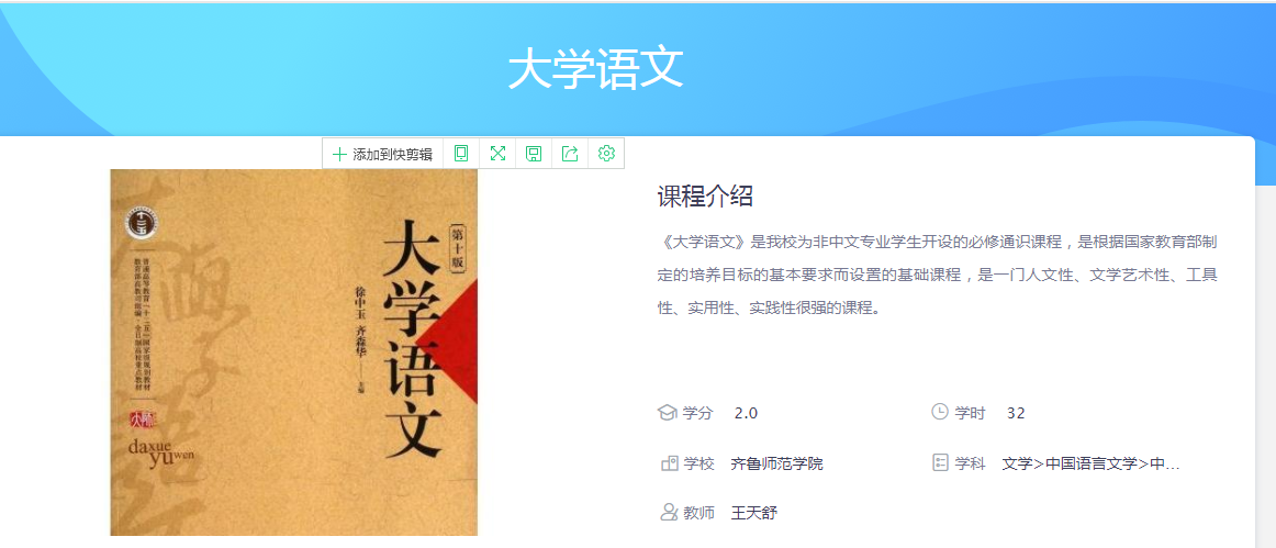 经过多方不同网络平台资源的平衡、比较,决定采用“智慧树”平台及“知到”App支持的《大学语文》课程,作为学生的共享课程,并利用平台技术建立翻转课《大学语文》,开展线上线下混合式的教学活动。